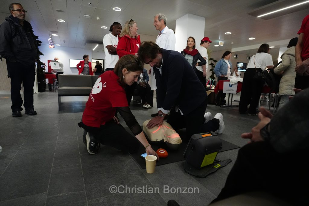 Dans le hall des Hôpitaux Universitaires de Genève, les battements ne sont pas seulement ceux que l’on surveille en cardiologie. Ils sont ceux d’une mobilisation citoyenne, rassemblée pour apprendre à sauver une vie.
