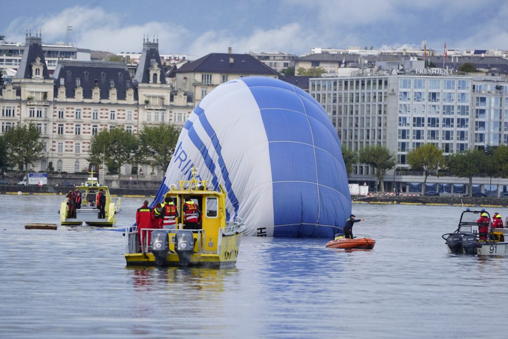 Exercice de sauvetage d’une montgolfière dans le Lac Léman